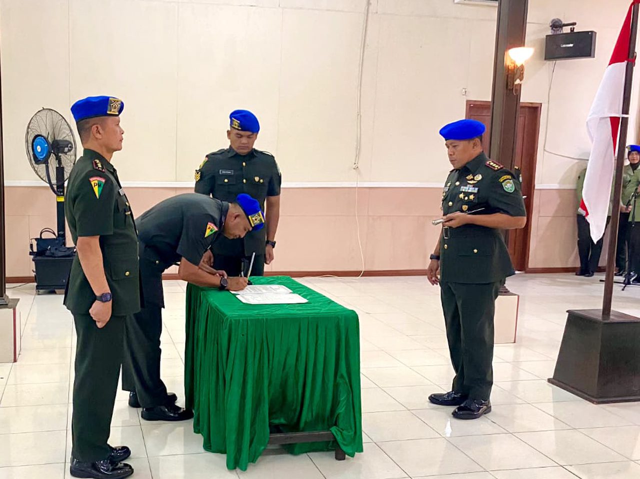 Sertijab dari pejabat lama Letkol Cpm Darwin Nasution kepada pejabat baru Letkol Cpm Hendro Pramono, di Mapomdam IM, Banda Aceh, Selasa (7/10/2025).