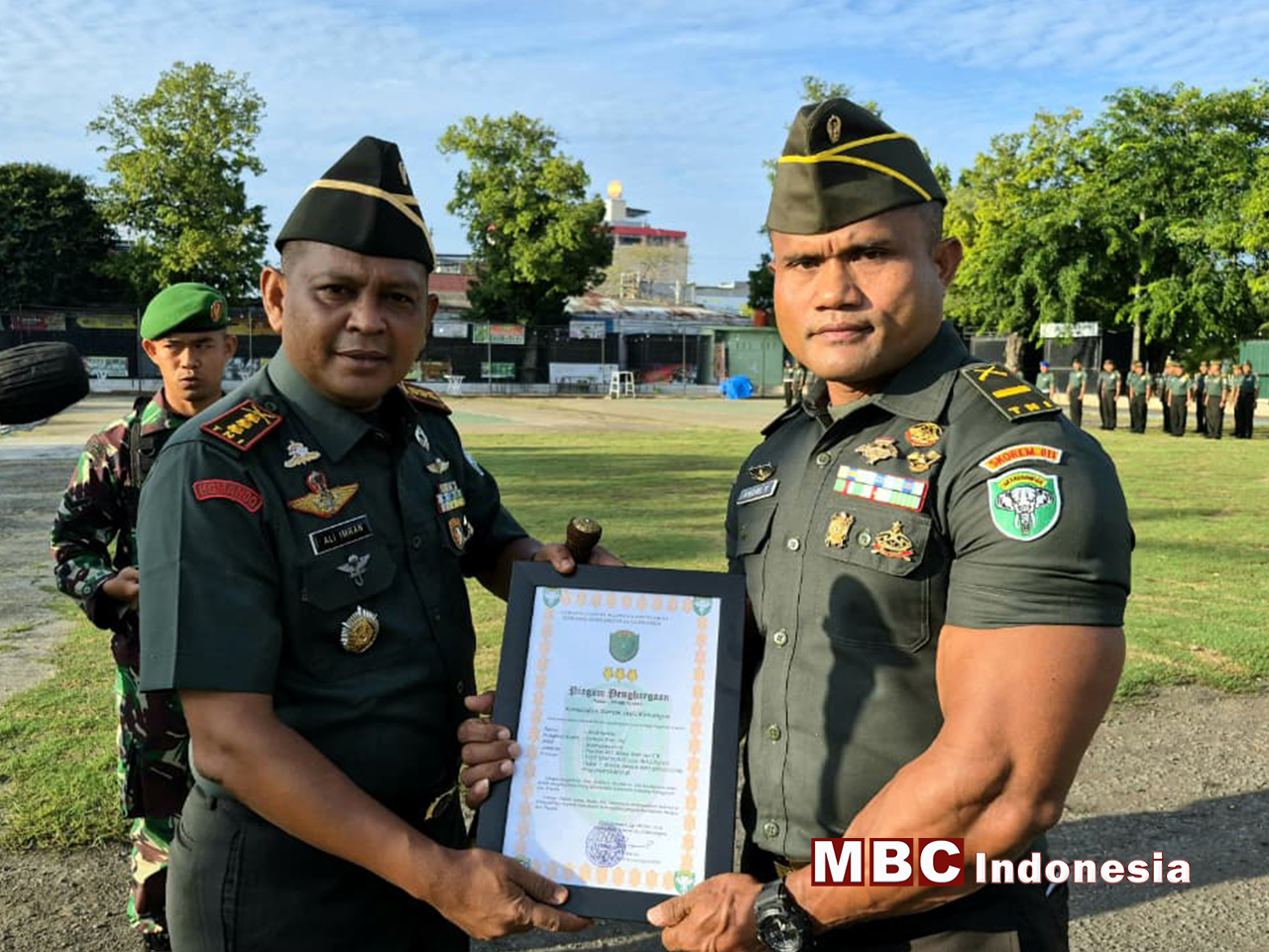 Danrem 011/Lilawangsa, Kolonel Inf Ali Imran, memberikan penghargaan kepada prajurit TNI berprestasi. Letda Inf Andriyanto peraih medali emas kejuaraan binaraga Asia dan Fisik Internasional, WFF Universe, di Malaysia.