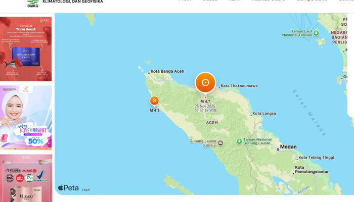 MBC Indonesia.com. Aceh – Gempa bumi dengan kekuatan magnitudo (M) 4,7 terjadi di Kabupaten Bener Meriah, Aceh. Gempa itu berada di kedalaman 4 Km. “#Gempa Mag:4.7, 25-Nov-2025 00:30:16WIB,” demikian postingan X @infoBMKG, Selasa (25/11/2025).