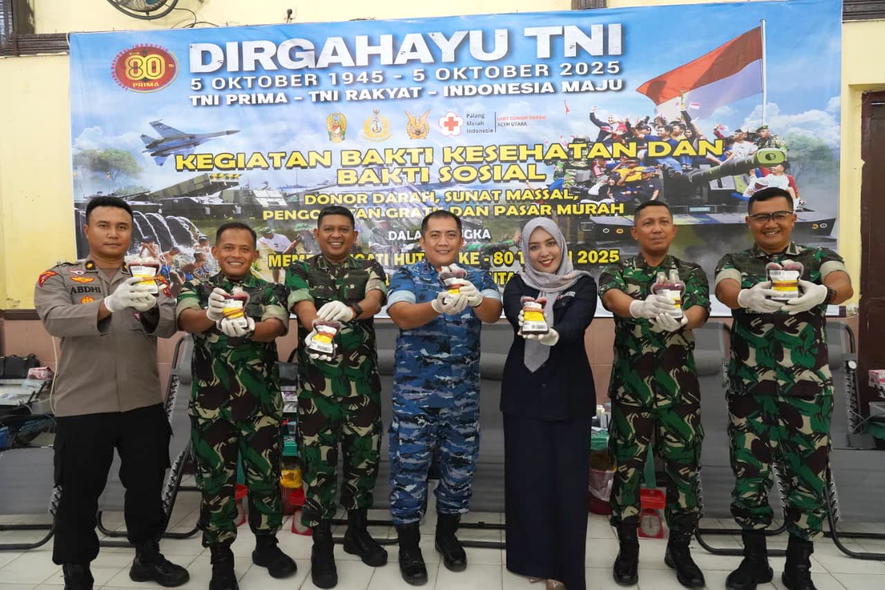Dalam rangka memperingati Hari Ulang Tahun ke-80 Tentara Nasional Indonesia, puncak 5 Oktober 2025. TNI Tiga Matra, Darat, Laut dan Udara di jajaran Korem 011/Lilawangsa, menyelenggarakan bakti sosial.
