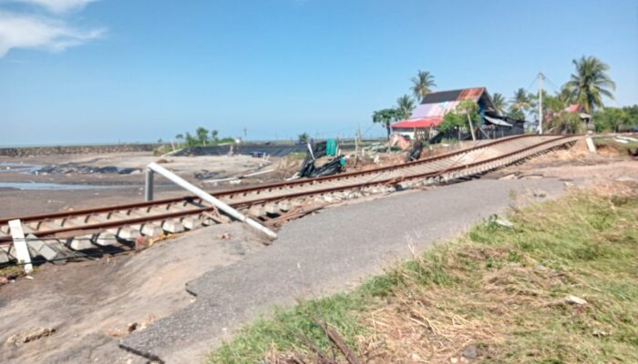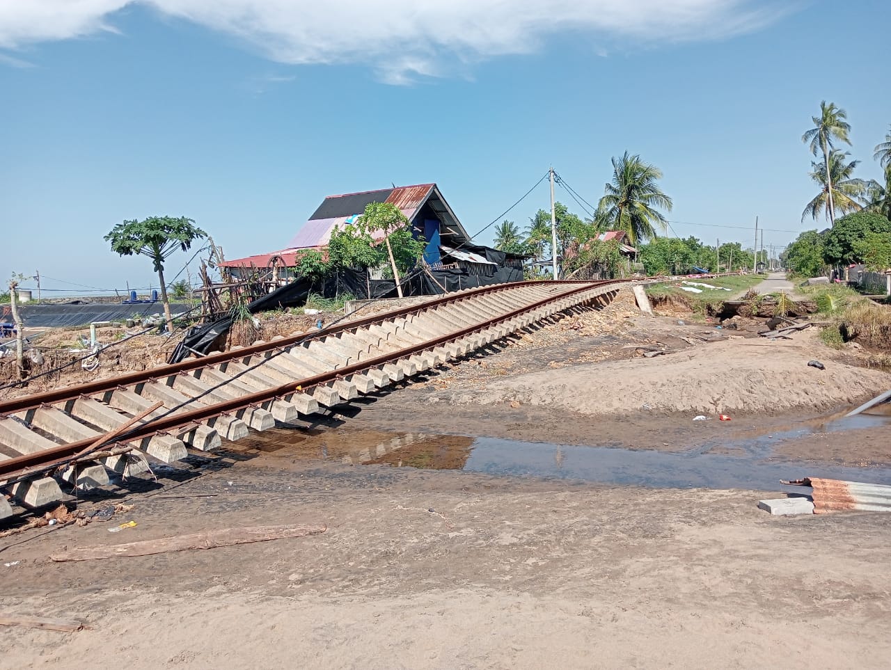 Salah satunya sarana transportasi kereta api perintis Aceh, dipastikan berhenti total. Pasalnya lintasan rel kereta api tepatnya di Desa Meunasah Lhok, Kecamatan Muara Batu, Kabupaten Aceh Utara. Selain itu akses jalan menuju stasiun amblas sedalam 1, 5 meter.