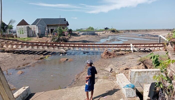 Timbunan kerikil di badan jalan lintasan kereta api itu lenyap terbawa arus banjir. Bahkan ada beberapa tempat kerikil-kerikil juga terbawa arus dan berserakan di badan jalan nasional tepatnya di dekat komplek perumahan PT PIM.
