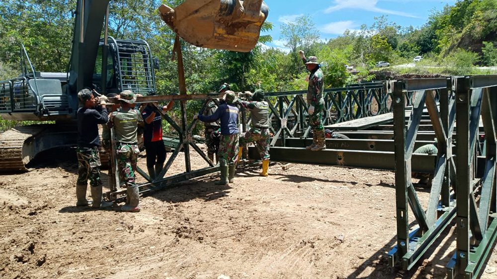 “Saat ini tim di lapangan telah menyelesaikan perangkaian jembatan tipe 2.1 sebanyak 16 petak. Selain itu, pemasangan panel, serta pendorongan jembatan sebanyak 7 petak,” ujar pimpinan lapangan, Lettu Czi Saifullah di lokasi.